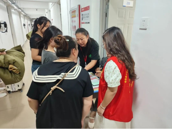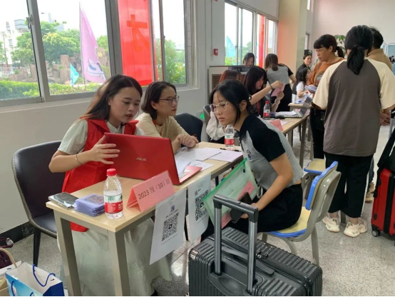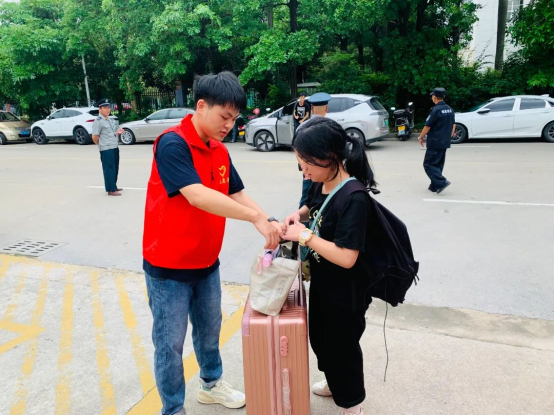 縱使上午艷陽高照,中午起又風(fēng)雨交加,志愿者們熱情不減,接過行囊,一件接一件,有序高效穿梭在宿舍樓之間,快速引導(dǎo)至對(duì)應(yīng)樓層,并向萌新們囑咐注意事項(xiàng),協(xié)助新生盡快適應(yīng)新環(huán)境,以心迎新,呈現(xiàn)出踏實(shí)奮進(jìn)、帶頭示范的黨員志愿者的精神風(fēng)貌,提高了迎新工作的服務(wù)質(zhì)量和效率,充分發(fā)揚(yáng)志愿者服務(wù)精神。