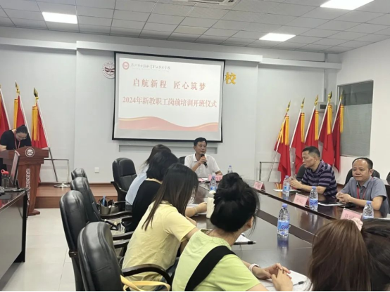 8月26日上午,2024年新教師崗前培訓開班儀式在黃塘校區(qū)綜合樓大會議室舉行。校長鄭乃吉、黨支部書記潘向東、常務(wù)副校長杜成達、副校長工會主席陳炳耀等校領(lǐng)導及相關(guān)處室負責人參加,開班儀式由黨政辦陳云娥副主任主持。