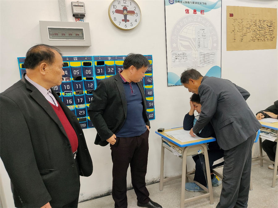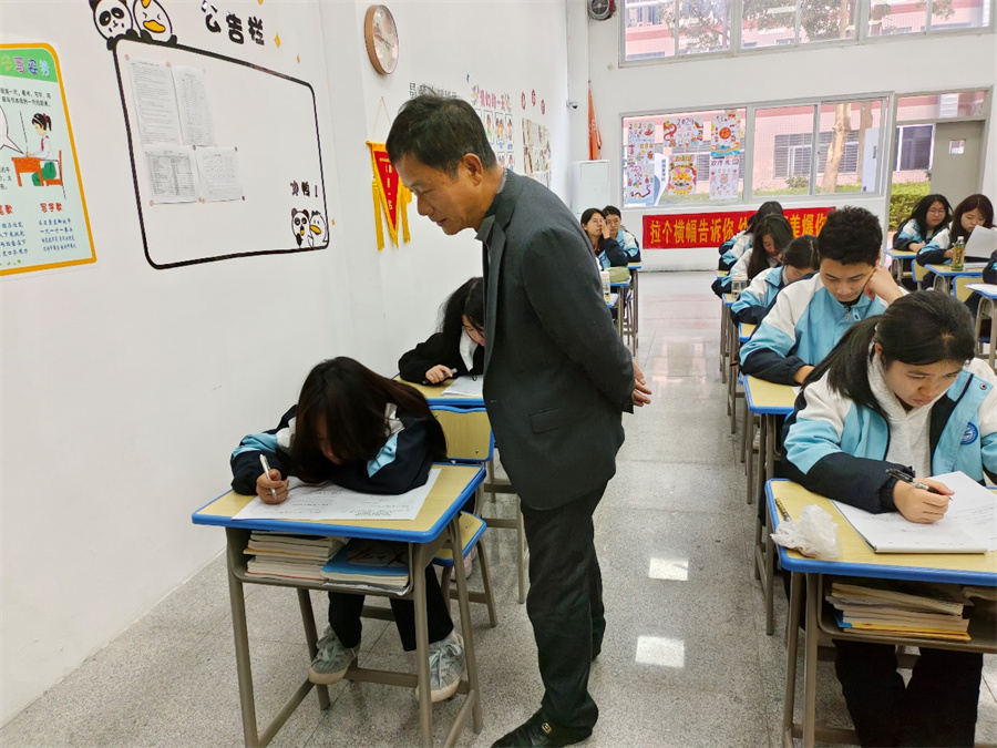嚴管都是厚愛。考場內,監(jiān)考教師高度負責,認真履行監(jiān)考職責。慎終如始,則無敗事??荚嚳颇慷啵紙龇植紡V,保障難度大。為能及時解決考場內可能出現(xiàn)的各種問題,保障考試順利進行,并為全體考生鼓勁加油。鄭乃吉校長、陳炳耀副校長、許碧奎副校長以及相關考務人員深入考場一線,積極參與巡考,率先垂范,營造“和諧嚴肅”、“考堂神圣”的考試環(huán)境。