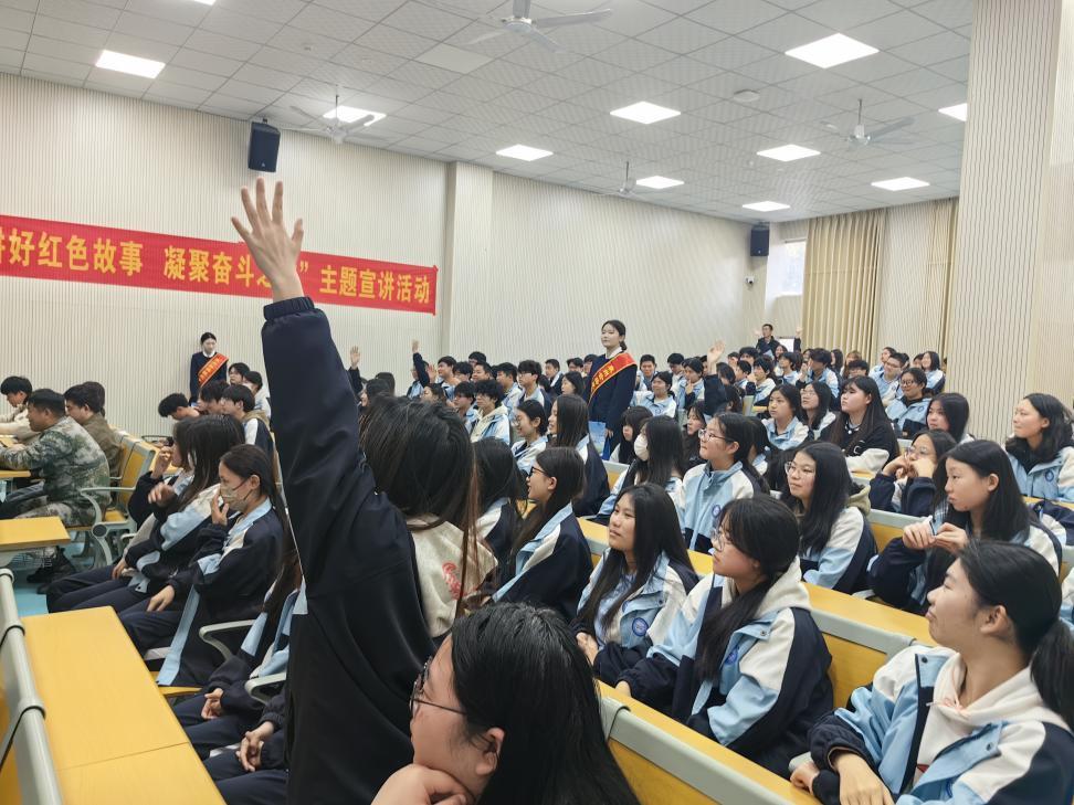 為了充分調動師生尤其是學生們的積極性和注意力,主辦方在宣講過程中穿插了精彩的紅色知識問答環(huán)節(jié),每個宣講結束后,主持人便趁熱打鐵,拋出2道與宣講內容緊密相關的問題,在一問一答中幫助聽眾提煉重點、加深記憶,大大增強宣講的互動性和吸引力,讓紅色故事宣講更加入腦入心。