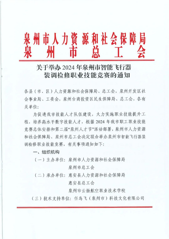 2024年泉州市人力資源和社會保障局、泉州市總工會聯(lián)合舉辦的無人機競賽將在我校舉辦