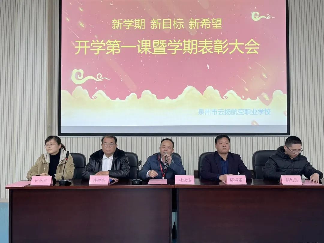 陽春布德澤,萬物生光輝。隨著云揚學(xué)子的歸來,沉寂了一個多月的校園又開始熱鬧了起來。2月15日下午,我校以“新學(xué)期 新目標(biāo) 新希望”為主題的開學(xué)第一課暨學(xué)期表彰大會在階梯教室拉開了序幕,杜成達(dá)常務(wù)副校長,陳炳耀副校長、許碧奎副校長、教學(xué)部何燕紅主任出席,團(tuán)委負(fù)責(zé)人蔡伯恩老師主持會議。