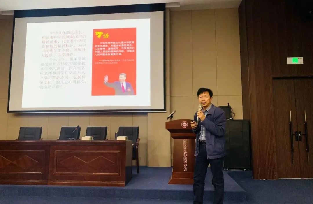 講座伊始,郭建生書記從習近平總書記關(guān)于傳統(tǒng)文化的重要講話講起,向在場師生們分享了傳統(tǒng)文化與革命詩詞名篇的魅力、學習革命詩詞名篇的意義,并對他們弘揚傳統(tǒng)文化,學習革命詩詞名篇寄予了厚望。