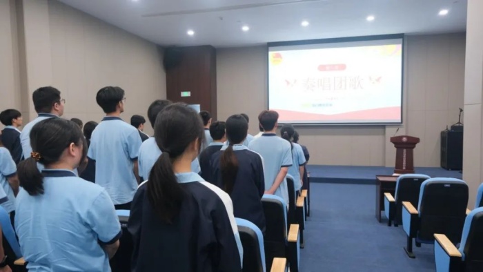 由校長助理、團支部書記王一鋒老師宣讀新團員名單,并對24名新團員的加入表示熱烈的歡迎和祝賀。本次新發(fā)展的團員,經(jīng)過層層選拔和各環(huán)節(jié)考核,從遞交入團申請書、經(jīng)支部大會討論成為入團積極分子、參與團課學(xué)習(xí)與社會實踐活動、通過結(jié)業(yè)考核到最終確定為發(fā)展對象,一步步堅定地踐行自己的初心使命。