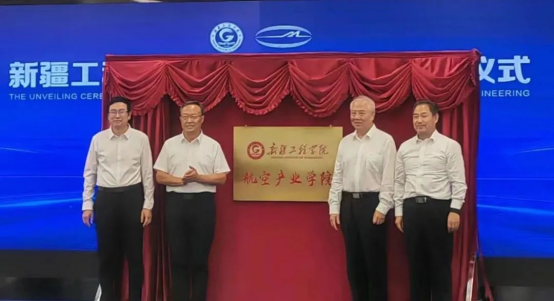 當(dāng)天的揭牌儀式上,中國工程院院士、中國商用飛機(jī)有限責(zé)任公司首席科學(xué)家吳光輝與有關(guān)同志為新疆工程學(xué)院航空產(chǎn)業(yè)學(xué)院揭牌。自治區(qū)副主席凱賽爾·阿不都克熱木致辭,吳光輝致辭。