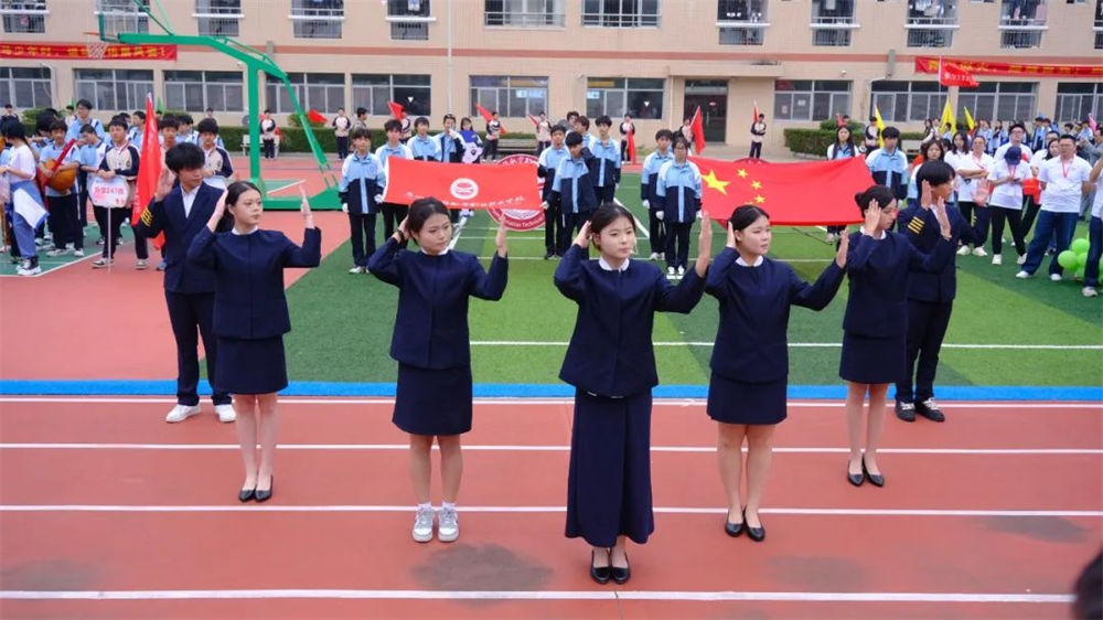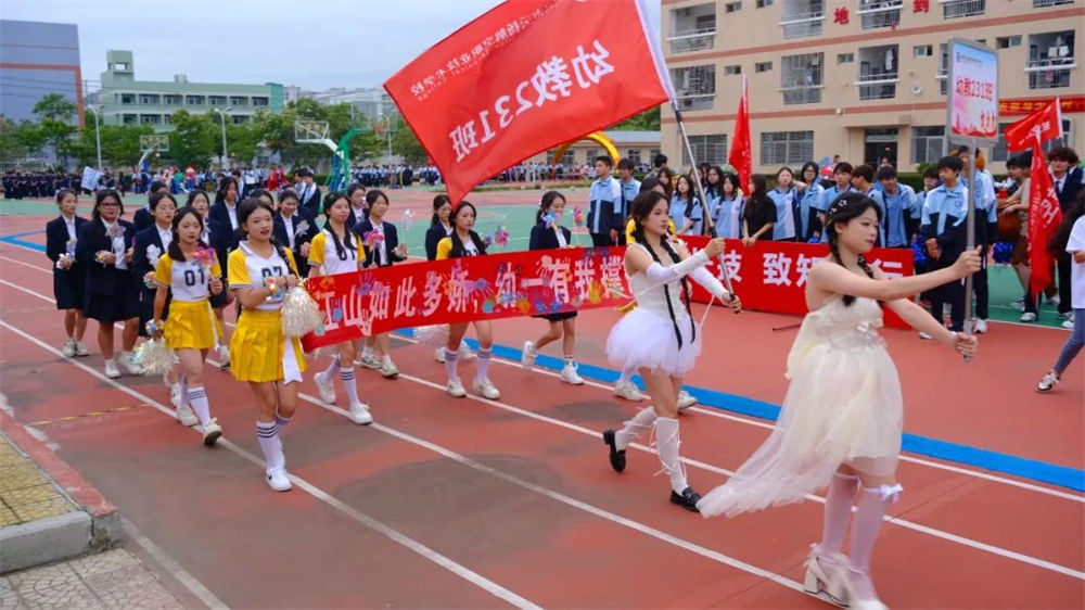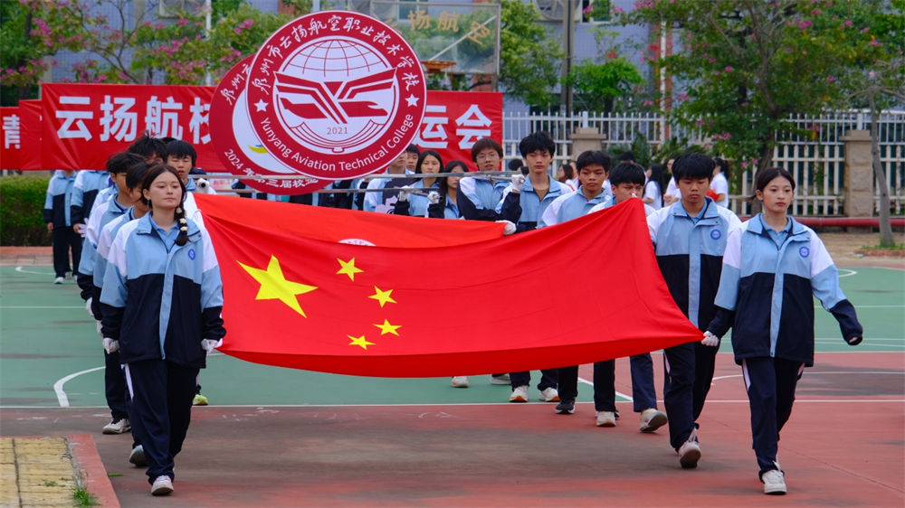 入場(chǎng)式上,各方陣精彩亮相。國(guó)旗護(hù)衛(wèi)隊(duì)英姿颯爽,手擎鮮艷的五星紅旗引領(lǐng)入場(chǎng)隊(duì)伍步入會(huì)場(chǎng),校旗護(hù)衛(wèi)隊(duì)緊隨其后,彰顯著云揚(yáng)航空職業(yè)技術(shù)學(xué)校的精神與榮耀。教師方陣精神昂揚(yáng),步履整齊。各個(gè)班級(jí)方陣驚艷出場(chǎng),他們口號(hào)響亮,步伐堅(jiān)定,充分展現(xiàn)出云揚(yáng)學(xué)子的青春活力與昂揚(yáng)斗志。