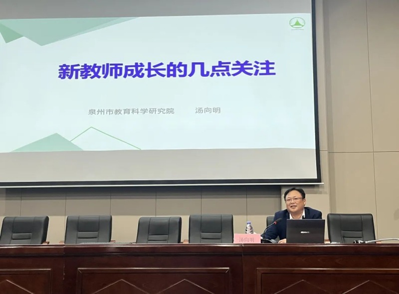 泉州市教育科學(xué)研究院的院長兼書記湯向明,以《新教師成長的幾點關(guān)注》為題,從備課、授課、作業(yè)布置及教學(xué)研究等多個教學(xué)環(huán)節(jié)切入,并輔以豐富的教學(xué)課堂實例進行說明。湯院長指出,教師需積極承擔(dān)引導(dǎo)者的角色,通過運用鼓勵性語言和啟發(fā)性提問,激發(fā)學(xué)生的主動思考,培養(yǎng)其自主探索知識的能力;同時,教師應(yīng)密切關(guān)注學(xué)生的思維過程,洞察其思維的獨特性與發(fā)展需求。此外,湯院長還提倡教師應(yīng)致力于提升課堂的開放性,將抽象知識轉(zhuǎn)化為直觀、生動的立體學(xué)習(xí)內(nèi)容。整場講座精彩紛呈,與會老師們?nèi)褙炞?,沉浸其中,深受啟發(fā)。