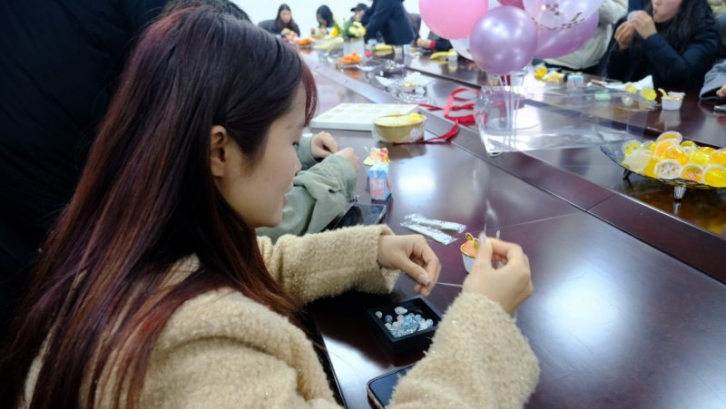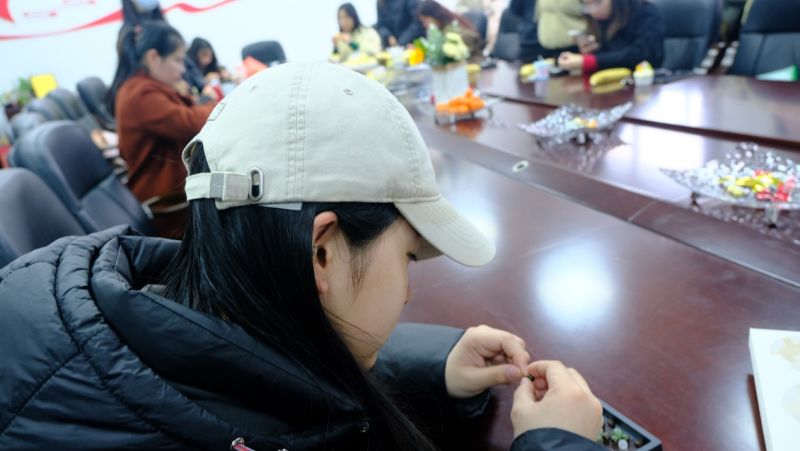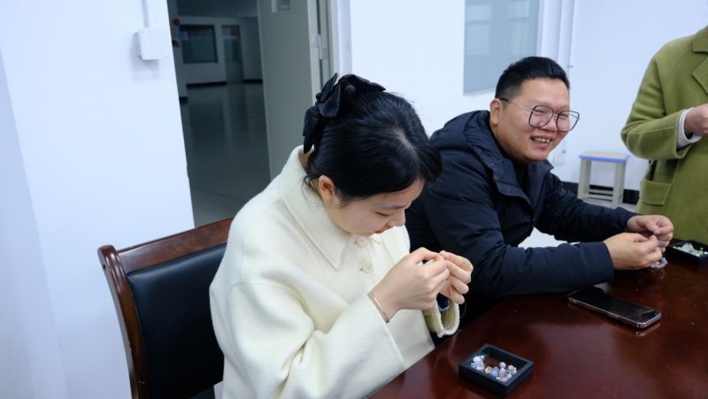3月7日下午,學(xué)校大會(huì)議室溫馨而雅致,邀請(qǐng)共建單位民生銀行共聚一堂,共同開(kāi)展導(dǎo)師以“珠串熠熠,遇見(jiàn)不一樣的她力量”為主題。現(xiàn)場(chǎng)演示了香珠手串的制作技法。從色彩的巧妙搭配到編織技巧的靈活運(yùn)用,女職工們?cè)诳|縷清香中開(kāi)啟了一段創(chuàng)意之旅。清脆的珠玉碰撞聲與歡快的笑聲交織在一起,構(gòu)成了一曲動(dòng)人的樂(lè)章。女職工們充分發(fā)揮自己的創(chuàng)意與想象力,精心挑選珠子、搭配顏色、設(shè)計(jì)款式,現(xiàn)場(chǎng)氣氛熱烈非凡。經(jīng)過(guò)一個(gè)多小時(shí)的精心制作,一串串精美別致、獨(dú)一無(wú)二的手串作品陸續(xù)誕生。大家互相欣賞作品、交流心得,臉上洋溢著喜悅與自豪的笑容。