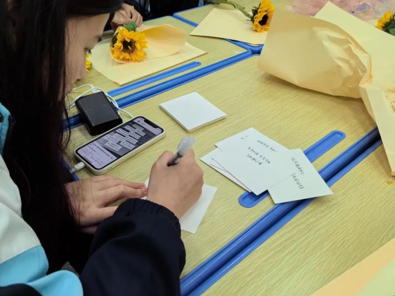 為慶祝這一屬于“女神”們的節(jié)日,學(xué)校團(tuán)委特別組織了“花香傳情,情暖師心”感恩活動(dòng)。學(xué)生們滿(mǎn)懷深情,有的揮毫潑墨書(shū)寫(xiě)祝??ㄆ械木墓蠢绽L制裝飾畫(huà),還有的巧手制作精美花束,將創(chuàng)意與愛(ài)融入每一件獨(dú)一無(wú)二的禮物中。3月7日,學(xué)生們利用課間操時(shí)間親手將包裝精美的鮮花獻(xiàn)給女教師,每一束花都承載著深深的敬意與美好的祝愿。這份真摯與用心深深觸動(dòng)了老師們的心弦,她們的臉上綻放出幸福的笑容。此次活動(dòng)不僅營(yíng)造了溫馨和諧的校園氛圍,更是一次心靈的觸碰與情感的交融。