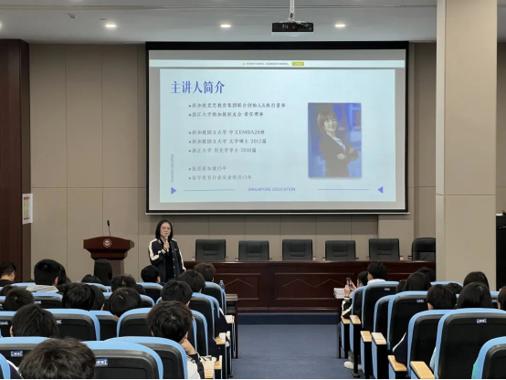 隨后,愛思教育集團的代表李陽老師為師生們獻上了一場精彩紛呈的宣講。她以專業(yè)的視角和生動的語言,深入剖析了新加坡教育的獨特魅力與顯著優(yōu)勢,包括其先進的教學理念、優(yōu)質(zhì)的教育資源、與國際接軌的課程設置以及豐富的文化多樣性等。同時,她還結合我校的專業(yè)特色與實際情況,為學生們提供了對接新加坡優(yōu)質(zhì)教育資源、實現(xiàn)職業(yè)升學躍升的實用策略與寶貴建議。