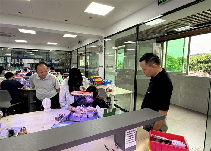 在企業(yè)負(fù)責(zé)人陪同下,杜成達(dá)校長一行首先參觀了超維醫(yī)療科技有限公司的生產(chǎn)車間。在工作人員的引導(dǎo)下,校領(lǐng)導(dǎo)詳細(xì)了解了口腔義齒從原材料處理、數(shù)字化設(shè)計、3D打印成型到精細(xì)打磨、質(zhì)檢包裝的完整生產(chǎn)流程,并實地察看了先進(jìn)的生產(chǎn)設(shè)備與嚴(yán)格的質(zhì)量控制體系,對企業(yè)的專業(yè)化、規(guī)范化管理給予高度評價。