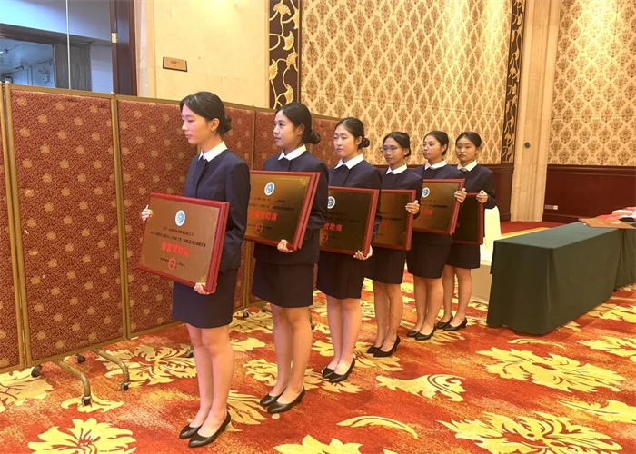 典禮現(xiàn)場,我校禮儀隊學子化身“形象大使”,以專業(yè)得體的服務成為一道亮麗風景。從簽到處溫暖親切的問候,到引導嘉賓落座時的細致周到;從頒獎環(huán)節(jié)中規(guī)范流暢的托舉動作,到全程保持的優(yōu)雅儀態(tài)——她們用微笑傳遞溫度,用專業(yè)贏得贊譽,展現(xiàn)了云揚學子的良好素養(yǎng)。