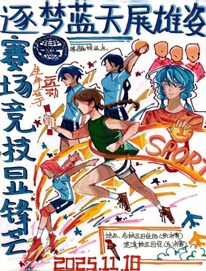 281 份海報(bào)勾勒賽場(chǎng)百態(tài),10 份精品提前點(diǎn)燃校運(yùn)熱情。強(qiáng)烈色彩對(duì)比的作品,直擊速度與激情的賽場(chǎng)內(nèi)核;柔和筆觸勾勒的畫面,傳遞夢(mèng)想啟航的溫情力量;細(xì)節(jié)滿滿的創(chuàng)作,則藏著對(duì)校運(yùn)會(huì)的無(wú)限期許。一張張生動(dòng)鮮活的海報(bào),不僅成為校園里的亮眼風(fēng)景線,更讓全校師生對(duì)校運(yùn)會(huì)的期待值拉滿!