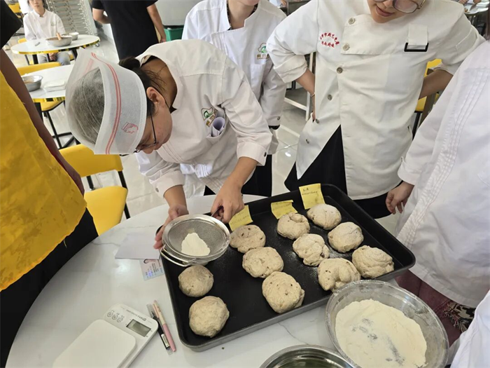 培訓(xùn)中,專業(yè)教師圍繞面包烘焙全流程,系統(tǒng)講授了面粉種類與特性、酵母作用原理、發(fā)酵環(huán)境控制、烘焙時間把握等核心知識,講解深入淺出、細(xì)致到位。教職工們學(xué)習(xí)熱情高漲,在揉面、發(fā)酵、整形等實(shí)操環(huán)節(jié)反復(fù)練習(xí)、用心揣摩,逐步掌握了面包制作的關(guān)鍵技能。從最初的“烘焙小白”到能夠熟練制作多種經(jīng)典面包,大家的進(jìn)步有目共睹,也為迎接考核打下堅(jiān)實(shí)基礎(chǔ)。