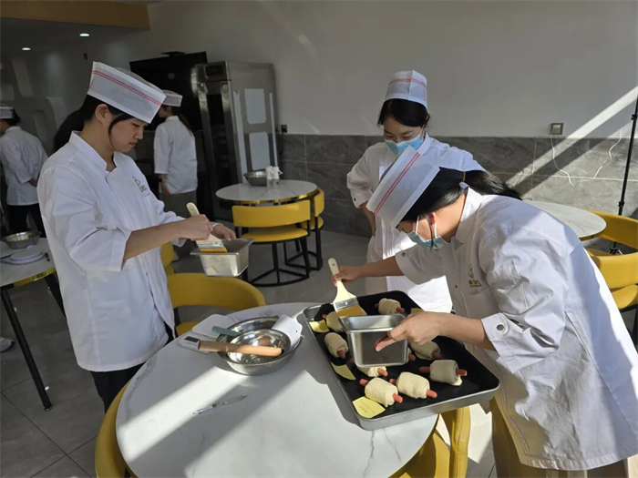 考核現(xiàn)場氣氛既熱烈又緊張。教職工們統(tǒng)一身著廚師服,精神抖擻地步入實(shí)訓(xùn)室??己酥噶钜幌?,大家迅速進(jìn)入狀態(tài)。有的老師揉面動作行云流水,面團(tuán)在指尖自如變換;有的老師細(xì)心觀察面團(tuán)發(fā)酵狀態(tài),眼神中滿是對完美成品的追求。隨著烤箱中飄散出陣陣誘人香氣,大家都在期待作品出爐的那一刻——那香氣,正是對他們努力最好的回報。