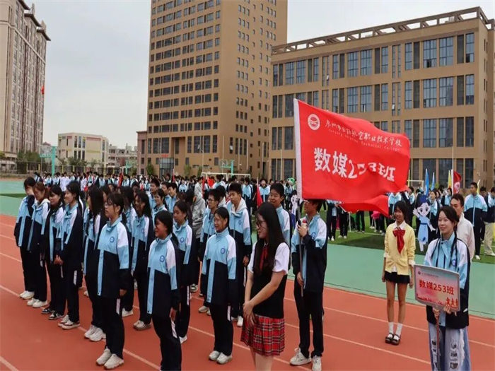 有的班級用紅布翻飛拼出五星紅旗,展現(xiàn)云揚學子的愛國情懷;有的班級組成火箭模型方陣高喊“科技強國”,讓未來感直接拉滿;有的班級結(jié)合專業(yè)特色,在班級用舞蹈跳出運動熱潮;有的班級舉著自制標語牌霸氣表白,將文明素養(yǎng)與運動熱情完美融合,成為賽場上一道亮麗的風景線。