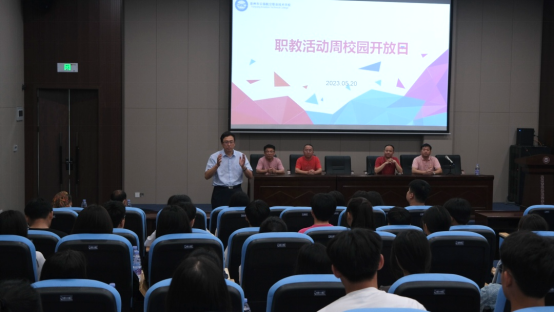 活動(dòng)當(dāng)天,我校迎來了來自全市相關(guān)中學(xué)的學(xué)生和家長們,校園里人頭攢動(dòng),熱鬧非凡。在報(bào)告廳里,學(xué)校遲巖校長首先代表學(xué)校對學(xué)生及家長們的到來表示熱烈的歡迎。隨后,他對職業(yè)教育活動(dòng)周的由來和我校職業(yè)教育活動(dòng)周的開展情況作了詳細(xì)介紹,并對我校的管理體系、育人理念和學(xué)校發(fā)展作了宣講。最后,杜成達(dá)常務(wù)副校長對我校專業(yè)設(shè)置、錄取辦法等相關(guān)情況進(jìn)行全面介紹。