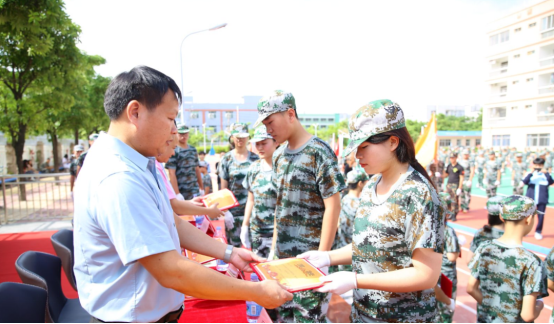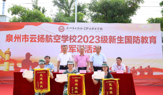 許碧奎副校長宣布泉州市云揚(yáng)航空職業(yè)技術(shù)學(xué)校2023級軍訓(xùn)正式閉營。