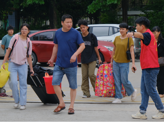 縱使上午艷陽高照,中午起又風(fēng)雨交加,志愿者們熱情不減,接過行囊,一件接一件,有序高效穿梭在宿舍樓之間,快速引導(dǎo)至對(duì)應(yīng)樓層,并向萌新們囑咐注意事項(xiàng),協(xié)助新生盡快適應(yīng)新環(huán)境,以心迎新,呈現(xiàn)出踏實(shí)奮進(jìn)、帶頭示范的黨員志愿者的精神風(fēng)貌,提高了迎新工作的服務(wù)質(zhì)量和效率,充分發(fā)揚(yáng)志愿者服務(wù)精神。