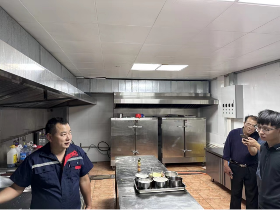 本次督導(dǎo)檢查重點(diǎn)為消防安全及食品安全。消防安全主要檢查消防栓及安全出口指示標(biāo)志是否可正常使用、疏散通道是否暢通、消防設(shè)備配備是否正確、監(jiān)控設(shè)備是否正常運(yùn)行等。食品安全檢查主要采取對(duì)食堂設(shè)施實(shí)地檢查、查閱臺(tái)賬資料等方式進(jìn)行了督查。對(duì)檢查中發(fā)現(xiàn)的問(wèn)題,檢查人員現(xiàn)場(chǎng)給予指導(dǎo)與建議。