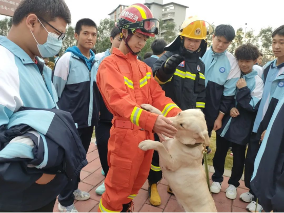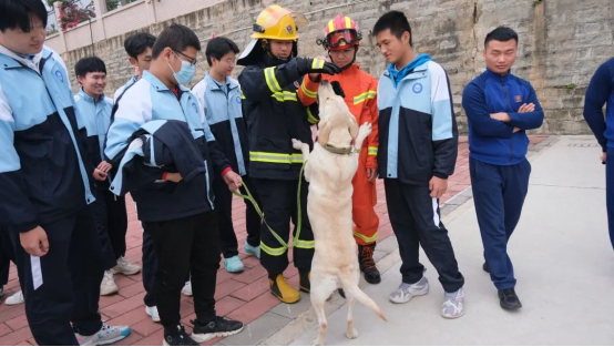 消防站工作人員向師生們詳細介紹了搜救犬訓練基地的基本情況,特別介紹了消防搜救犬,包括種類要求、日常訓練及其生活環(huán)境等。它們是消防員的“無言戰(zhàn)友”,救援現場的“特種兵”,是有特異功能的搜救英雄。隨后師生們觀摩了搜救犬的障礙、服從訓練,走鋼絲、鉆洞、跳躍等,敏捷的身姿贏得師生們的一陣陣喝彩。最后,在訓導員帶領下,與搜救犬進行友好互動,親身體驗了搜救犬訓導員與搜救犬的工作日常。