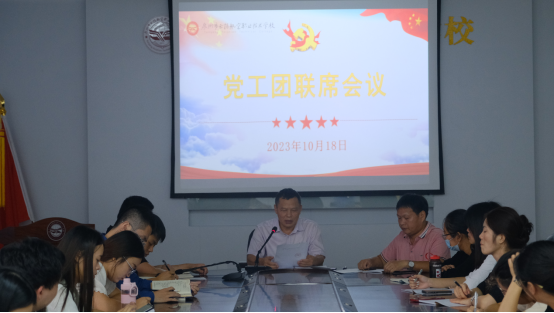 在縣、鎮(zhèn)工會領(lǐng)導(dǎo)及校內(nèi)黨工領(lǐng)導(dǎo)的關(guān)心指導(dǎo)與重視下,我校工會各項(xiàng)工作有條不紊地開展著。10月18日下午,我校召開黨工團(tuán)第一次聯(lián)席會議,學(xué)校黨支部潘向東書記對學(xué)習(xí)貫徹習(xí)近平新時(shí)代中國特色社會主義思想主題教育工作做出具體部署和要求,副校長、工會主席陳炳耀深入解讀了工會的職能,會議明確了黨工團(tuán)組織是確保學(xué)校前進(jìn)方向的重要組織。