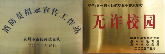 學(xué)校于2023年3月被泉州市人力資源和社會保障局授予第一個“泉州市產(chǎn)教融合應(yīng)用型特色校”,于2023年5月被泉州市消防救援支隊授予“消防員招錄宣傳工作站”。