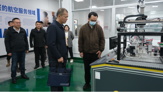隨后,調(diào)研組一行深入學(xué)校教學(xué)綜合樓,參觀了飛機(jī)維修、無人機(jī)應(yīng)用技術(shù)、機(jī)電一體化、智能網(wǎng)聯(lián)汽車技術(shù)等實(shí)訓(xùn)教室及航空研學(xué)館,觀摩體驗(yàn)了飛機(jī)模擬器操作演練的技能學(xué)習(xí)過程,對我校的產(chǎn)教融合建設(shè)和快速發(fā)展給予充分的肯定和高度評(píng)價(jià)。