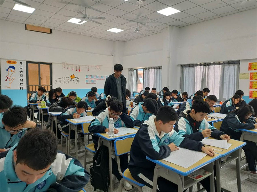 嚴(yán)管都是厚愛??紙?chǎng)內(nèi),監(jiān)考教師高度負(fù)責(zé),認(rèn)真履行監(jiān)考職責(zé)。慎終如始,則無敗事??荚嚳颇慷?,考場(chǎng)分布廣,保障難度大。為能及時(shí)解決考場(chǎng)內(nèi)可能出現(xiàn)的各種問題,保障考試順利進(jìn)行,并為全體考生鼓勁加油。鄭乃吉校長(zhǎng)、陳炳耀副校長(zhǎng)、許碧奎副校長(zhǎng)以及相關(guān)考務(wù)人員深入考場(chǎng)一線,積極參與巡考,率先垂范,營(yíng)造“和諧嚴(yán)肅”、“考堂神圣”的考試環(huán)境。