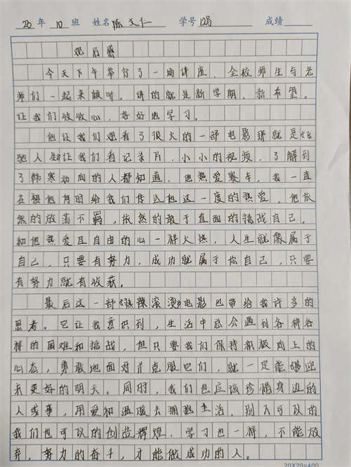 最后陳炳耀副校長結(jié)合上述影片賞析中生動典型的人物事跡,向同學們娓娓而談學會自律并借鑒《人民日報》九個微習慣,諄諄教導的同時并向同學們親切地送上了寄語,溫暖且幽默的談吐風格博得了學生們的陣陣掌聲。聽課的同學們意猶未盡,本次通用職業(yè)素質(zhì)課程開學第一課取得了圓滿的成功。