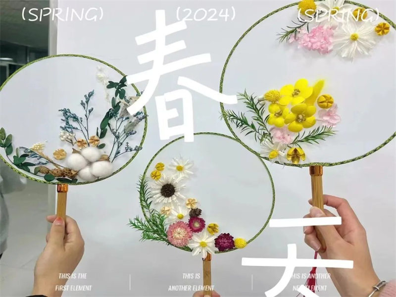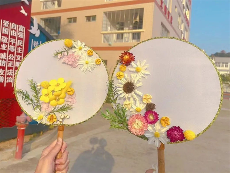 隨后,大家認(rèn)真地選材、設(shè)計(jì)造型,從架勢、布局到色彩搭配一一點(diǎn)綴在素白的扇面上,細(xì)細(xì)構(gòu)圖、精心粘貼,原本空空如也的團(tuán)扇瞬間變得“花團(tuán)錦簇 ”。望著從自己手中制作出的團(tuán)扇,大家綻放出喜悅的笑臉,活動(dòng)結(jié)束后,紛紛拿著自己做好的團(tuán)扇相互展示拍照,合影留念,此次制作團(tuán)扇活動(dòng)在其樂融融的氣氛中圓滿結(jié)束。