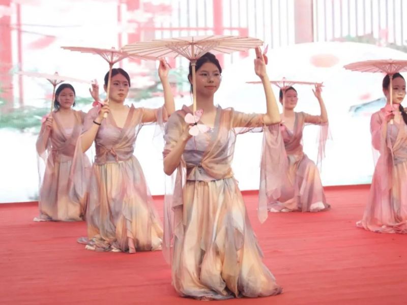 我校幼教專業(yè)攜舞蹈《如夢令》參加本次活動的文藝匯演。舞者們手執(zhí)紙傘,清影悠悠 裊裊婷婷,盡是少女無憂模樣。佳人如畫 美不勝收,將詩意與舞蹈完美融合?,F(xiàn)場觀眾身臨其境,掌聲連連。