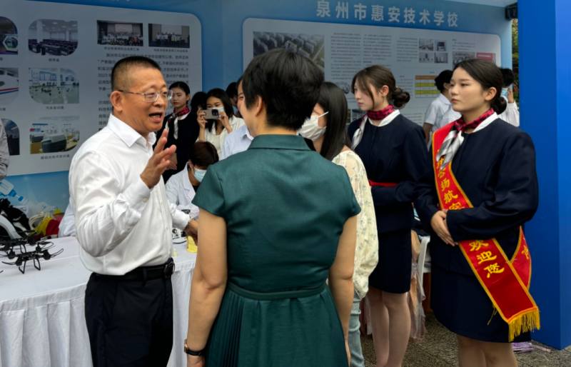 泉州市人社局黨組書記、局長許長春等領(lǐng)導(dǎo)一行蒞臨我校展位參觀指導(dǎo)