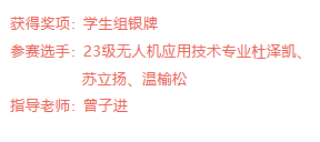 自受領承辦任務以來,我校高度重視,從賽前調(diào)度、工作籌備到賽場布置、志愿服務等各項工作,為參賽選手們搭建了切磋技藝、展示技能的平臺,確保了競賽的順利進行;參賽選手則嚴格按照大賽規(guī)定和要求積極備賽,強化系統(tǒng)專業(yè)的培訓,最終在與來自泉州市各大中專院校、企業(yè)的優(yōu)秀選手同場競技中取得佳績。本次賽事是我校無人機技術(shù)應用專業(yè)淬煉技能水平、檢驗育人成果的一次見證,也是我校辦學實力、賽事舉辦能力的一次檢驗,充分體現(xiàn)我校師生朝氣蓬勃的精神風貌。