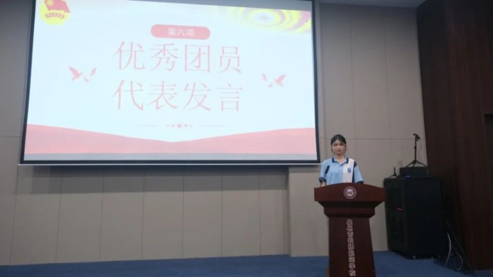 學(xué)先鋒榜樣、向優(yōu)秀看齊,才能行穩(wěn)致遠(yuǎn)。詹詩(shī)琪同學(xué)作為優(yōu)秀團(tuán)員代表向各位團(tuán)員們分享了自己加入共青團(tuán)的感受,同時(shí)號(hào)召各位團(tuán)員要在實(shí)踐中練就過(guò)硬本領(lǐng),注重在實(shí)踐中學(xué)真知,努力成為學(xué)有所長(zhǎng)、業(yè)有所專(zhuān)、技有所精的時(shí)代新人。
