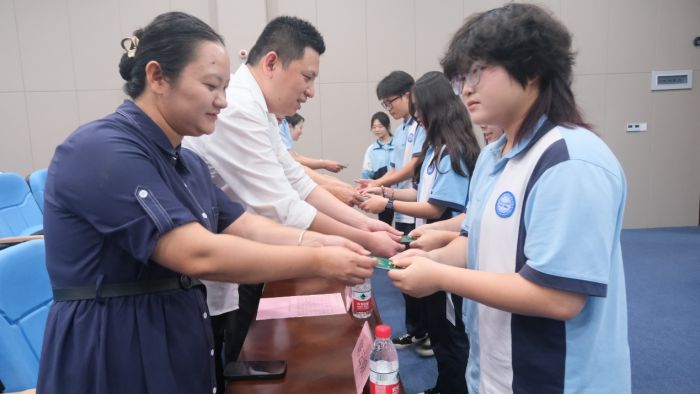參會(huì)的領(lǐng)導(dǎo)、老師為新團(tuán)員佩戴團(tuán)徽,頒發(fā)團(tuán)員證。佩戴上團(tuán)徽的這一刻,他們成為了共青團(tuán)的一份子,也肩負(fù)起了時(shí)代的重任。