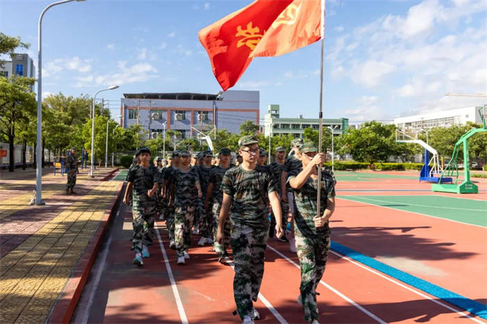 伴隨著雄壯激昂的分列式進(jìn)行曲,全體師生和教官莊嚴(yán)肅立,向軍旗致以崇高敬意。鏗鏘的旋律激蕩著每個(gè)人的心靈,既象征著軍訓(xùn)生活的圓滿(mǎn)結(jié)束,也預(yù)示著新征途的正式開(kāi)啟。教官洪亮的聲音宣布“標(biāo)兵就位,迎軍旗”!由新生組成的國(guó)旗方陣將象征著榮譽(yù)與責(zé)任的軍訓(xùn)軍旗完成交接。這面旗幟伴隨著同學(xué)們度過(guò)了難忘的軍訓(xùn)時(shí)光,既標(biāo)志著本屆新生軍訓(xùn)任務(wù)的正式結(jié)束,也寓意著帶訓(xùn)責(zé)任的傳承與國(guó)防精神的延續(xù)。