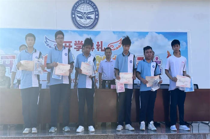副校長(zhǎng)、工會(huì)主席陳炳耀宣讀了我校學(xué)子在2023-2024學(xué)年參加省、市、縣技能競(jìng)賽獲獎(jiǎng)名單以及我校第二屆“藝起出彩”校園文化藝術(shù)節(jié)技能比賽的獲獎(jiǎng)名單,校領(lǐng)導(dǎo)為云揚(yáng)學(xué)子頒發(fā)獎(jiǎng)狀并合影,既是對(duì)他們的鼓勵(lì)鞭策,也是對(duì)全體云揚(yáng)航空人的激勵(lì)。
