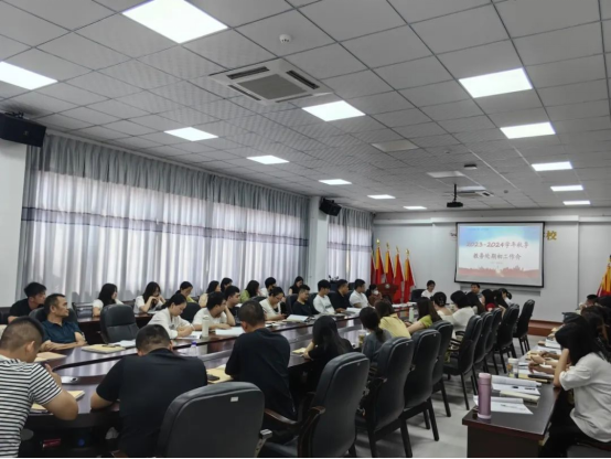 新學(xué)年,新篇章,為了優(yōu)化管理與規(guī)劃新學(xué)年的各項(xiàng)事務(wù),確保開學(xué)后各項(xiàng)教育教學(xué)工作的有效開展,明確奮斗目標(biāo),凝聚全體教師力量,確保新學(xué)期的教育教學(xué)工作穩(wěn)步推進(jìn)。2024年8月29日下午,我校教務(wù)處召開了2024年秋季期初工作部署會(huì),全體教師參加了此次會(huì)議。