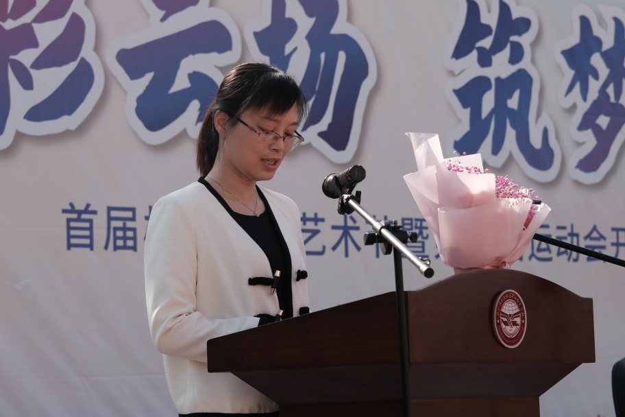 “以文化化人,以藝術(shù)潤心,以運(yùn)動(dòng)筑體魄,以夢想助成長!”,教務(wù)處何燕紅主任作為教師代表在開幕式上發(fā)言。她號(hào)召所有云揚(yáng)學(xué)子要拿出才情盡情演繹,最大限度地發(fā)揮出潛能,增強(qiáng)集體榮譽(yù)感,共同營造團(tuán)結(jié)、和諧、健康向上的校園文化氛圍,用青春的色彩點(diǎn)綴云揚(yáng)航空學(xué)校的天空。