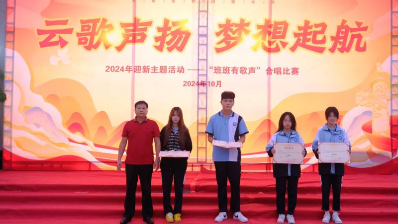 活動現(xiàn)場氣氛熱烈,掌聲雷動,國旗揮舞,匯成一片熱烈的紅色海洋!比賽采取現(xiàn)場評分的方式,經(jīng)過緊張激烈的角逐、公平公正的評分,獲獎情況揭曉,學(xué)校領(lǐng)導(dǎo)依次為獲獎班級進(jìn)行頒獎。這一刻,榮譽(yù)與喜悅交織在一起,成為了每位參與者心中最珍貴的記憶。
