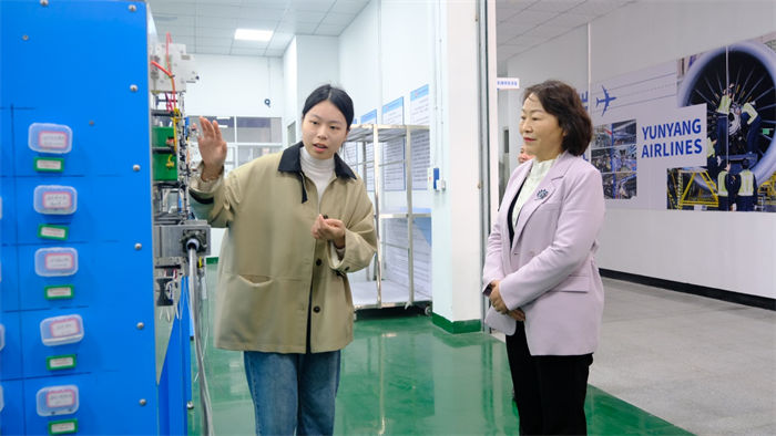 程書記一行首先深入我校港灣校區(qū),聽取了有關(guān)學校基本概況、辦學歷程和辦學特色的介紹,隨后實地參觀考察了我校黃塘校區(qū)飛機維修、機電一體化等各專業(yè)實訓室及航空研學館,對我校工學交替式的“產(chǎn)、學、研、用”立體教學模式、先進的辦學環(huán)境和實訓條件表示贊賞。