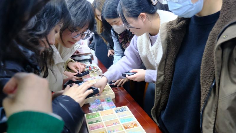 3月7日下午,學(xué)校大會(huì)議室溫馨而雅致,邀請(qǐng)共建單位民生銀行共聚一堂,共同開(kāi)展導(dǎo)師以“珠串熠熠,遇見(jiàn)不一樣的她力量”為主題?,F(xiàn)場(chǎng)演示了香珠手串的制作技法。從色彩的巧妙搭配到編織技巧的靈活運(yùn)用,女職工們?cè)诳|縷清香中開(kāi)啟了一段創(chuàng)意之旅。清脆的珠玉碰撞聲與歡快的笑聲交織在一起,構(gòu)成了一曲動(dòng)人的樂(lè)章。女職工們充分發(fā)揮自己的創(chuàng)意與想象力,精心挑選珠子、搭配顏色、設(shè)計(jì)款式,現(xiàn)場(chǎng)氣氛熱烈非凡。經(jīng)過(guò)一個(gè)多小時(shí)的精心制作,一串串精美別致、獨(dú)一無(wú)二的手串作品陸續(xù)誕生。大家互相欣賞作品、交流心得,臉上洋溢著喜悅與自豪的笑容。