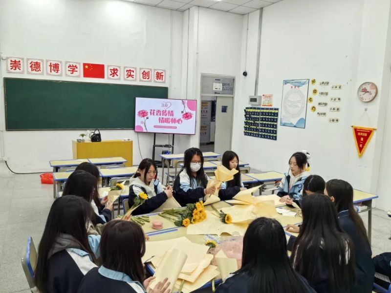 為慶祝這一屬于“女神”們的節(jié)日,學(xué)校團(tuán)委特別組織了“花香傳情,情暖師心”感恩活動(dòng)。學(xué)生們滿懷深情,有的揮毫潑墨書(shū)寫(xiě)祝??ㄆ械木墓蠢绽L制裝飾畫(huà),還有的巧手制作精美花束,將創(chuàng)意與愛(ài)融入每一件獨(dú)一無(wú)二的禮物中。3月7日,學(xué)生們利用課間操時(shí)間親手將包裝精美的鮮花獻(xiàn)給女教師,每一束花都承載著深深的敬意與美好的祝愿。這份真摯與用心深深觸動(dòng)了老師們的心弦,她們的臉上綻放出幸福的笑容。此次活動(dòng)不僅營(yíng)造了溫馨和諧的校園氛圍,更是一次心靈的觸碰與情感的交融。