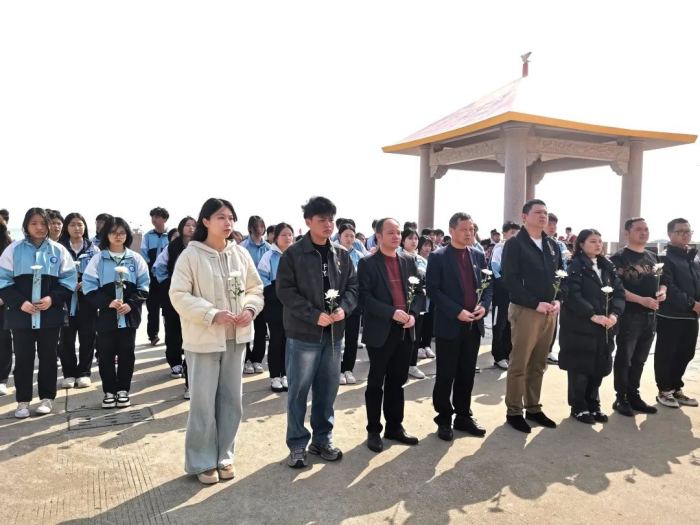 全體師生手持鮮花向烈士紀(jì)念碑肅立默哀。隨后在潘向東書記、杜成達(dá)常務(wù)副校長帶領(lǐng)下,依次敬獻(xiàn)鮮花,并緩步繞行瞻仰紀(jì)念碑,用行動(dòng)表達(dá)對英魂的敬仰與緬懷。