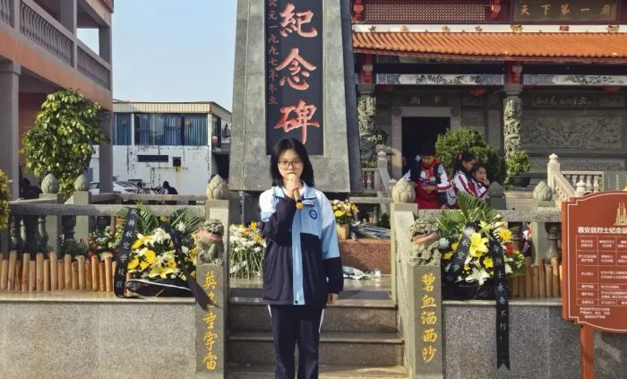 團(tuán)員代表閆慧娟講述曾恨阿婆建解放軍烈士廟的故事,闡釋軍民大愛精神,師生們深刻感受先烈們舍生忘死的崇高精神和無私奉獻(xiàn)的偉大品質(zhì)。她也代表全體團(tuán)員表示要賡續(xù)這份信仰,讓紅色血脈永遠(yuǎn)流淌在自己的心中。