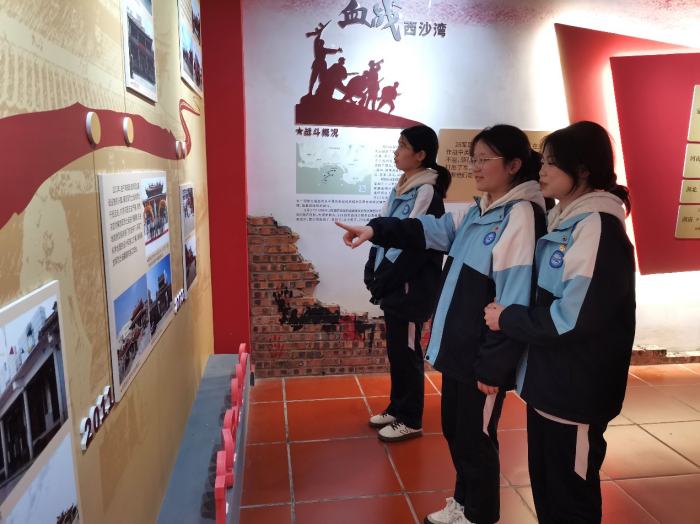 文物史料銘刻崢嶸歲月,見證和平生活的來之不易?;顒?dòng)尾聲,師生們參觀了烈士紀(jì)念館的歷史展陳。在紀(jì)念館中,師生們通過觀看27位解放軍烈士的英名錄、家書等珍貴史料,以及建廟歷程和西沙灣戰(zhàn)役情況的展示,生動(dòng)再現(xiàn)了那段波瀾壯闊的歷史。這些展覽內(nèi)容讓師生們深刻感受到“幸福生活是革命先輩用犧牲奉獻(xiàn)鑄就”的深刻內(nèi)涵。
