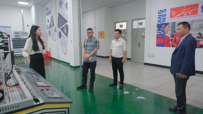 考察組一行深入我校教學(xué)綜合樓,重點(diǎn)走訪了飛機(jī)維修實(shí)訓(xùn)中心、無人機(jī)飛行演示區(qū)等特色教學(xué)場所,現(xiàn)場體驗(yàn)航空模擬設(shè)備,對(duì)我校先進(jìn)的實(shí)訓(xùn)設(shè)備和理實(shí)一體化培養(yǎng)模式表示高度認(rèn)可。