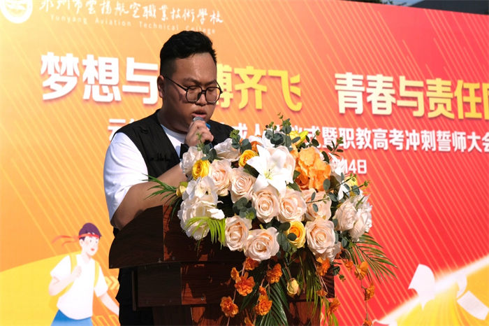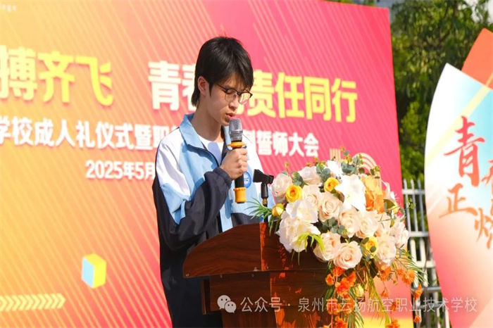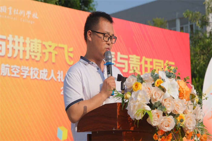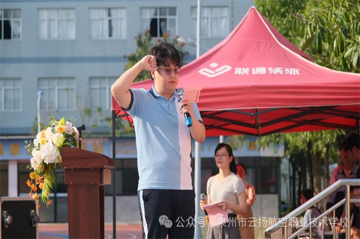“泉州市金牌工人”、泉州市職業(yè)技能競(jìng)賽智能飛行器裝調(diào)檢修銅牌獲得者曾子進(jìn)老師作為教師代表發(fā)言,勉勵(lì)學(xué)子珍惜時(shí)光、勤勉學(xué)習(xí),為夢(mèng)想筑牢基石。