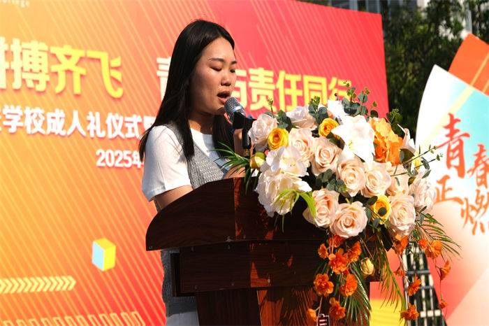 23級(jí)的班主任們一一上臺(tái)為同學(xué)們送上成人寄語(yǔ),學(xué)子們?yōu)榘嘀魅潍I(xiàn)花,表達(dá)深深的感激之情。這一刻,感恩與敬意交織在一起,成為青春最美的注腳。